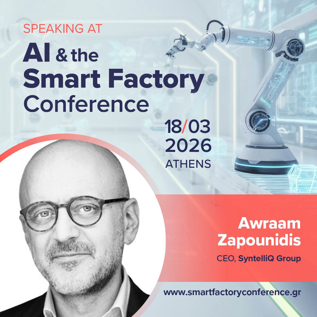 On March 18th, our CEO, Awraam Zapounidis, will be speaking at the AI & the Smart Factory Conference in Athens on the subject of how Industrial Intelligence is reshaping manufacturing competitiveness.